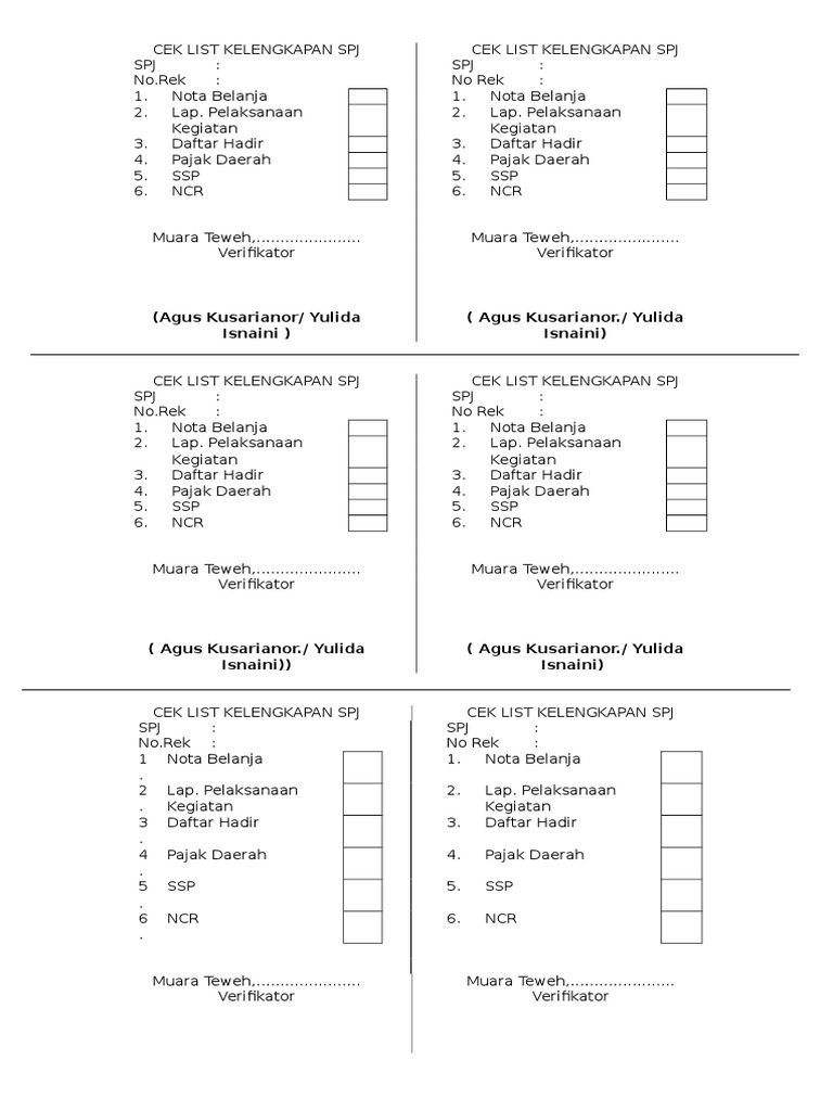 CEK LIST KELENGKAPAN SPJ CEK LIST KELENGKAPAN SPJ