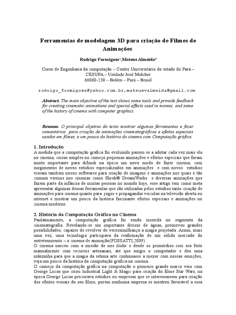 animaes para cinema quanto para jogos e propagandas veiculas na televiso aberta ou