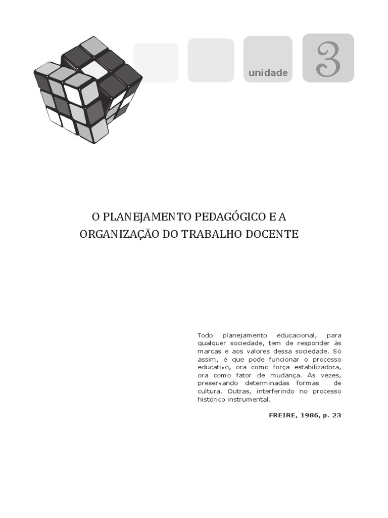 DIDTICA E TECNOLOGIA I O planejamento pedaggico e a organizao do trabalho docente