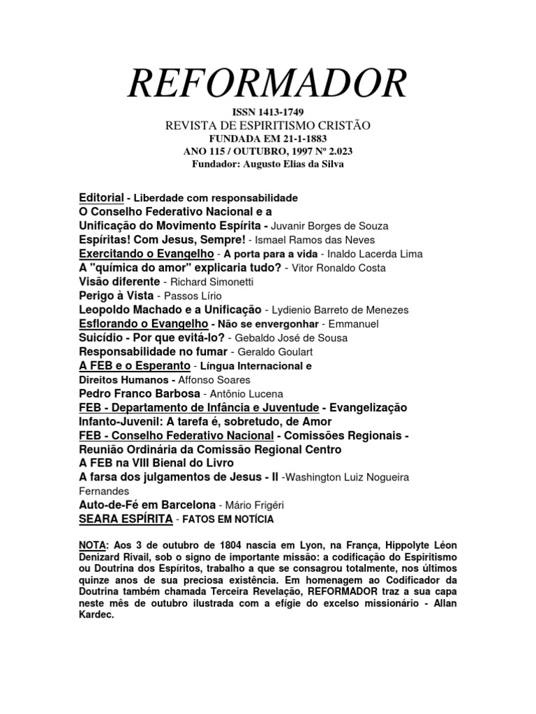 Doutrina também chamada Terceira Revelação, REFORMADOR traz a sua capa