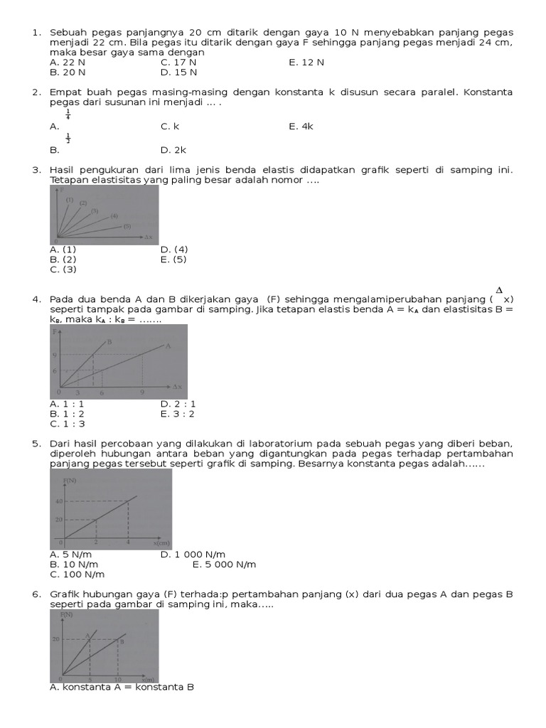 5. Dari hasil percobaan yang dilakukan di laboratorium pada sebuah pegas yang diberi beban,