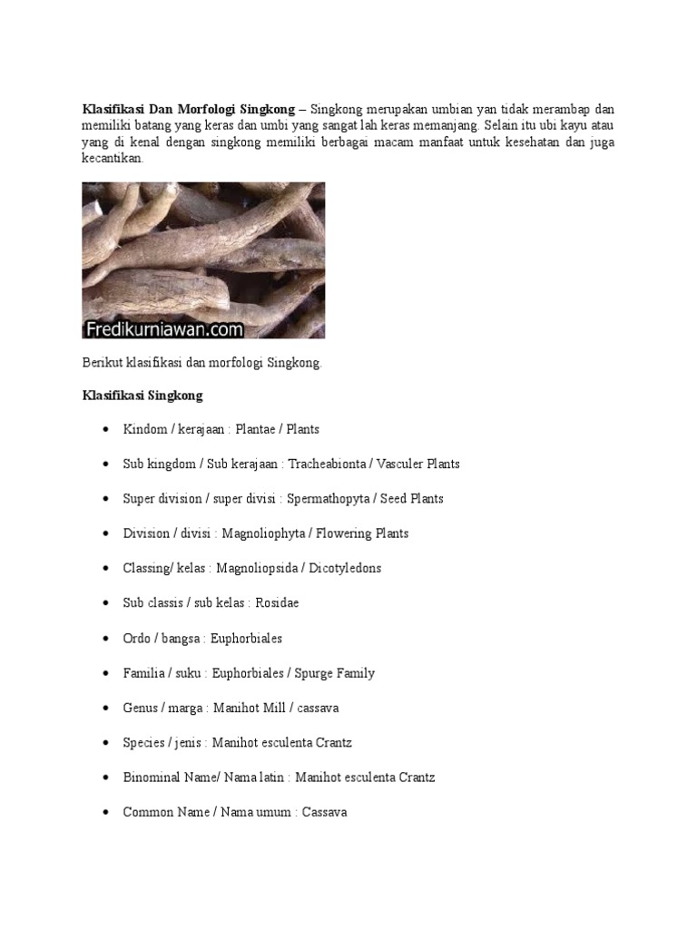 klasifikasi dan morfologi ubi kayu adalah sebagai berikut :