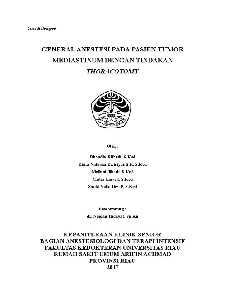 Anestesi Umum untuk Tumor Mediastinum