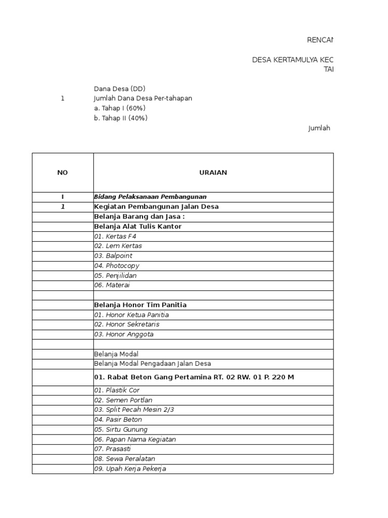 RENCANA ANGGARAN BIAYA (RAB)