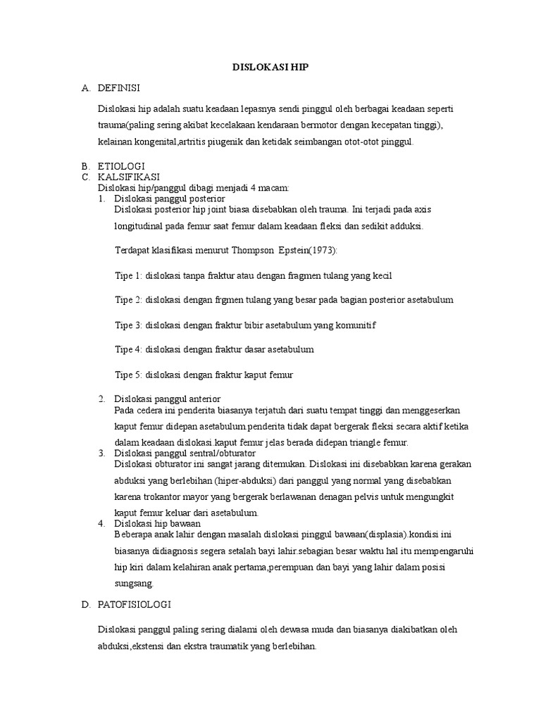Dislokasi posterior hip joint biasa disebabkan oleh trauma. Ini terjadi pada axis