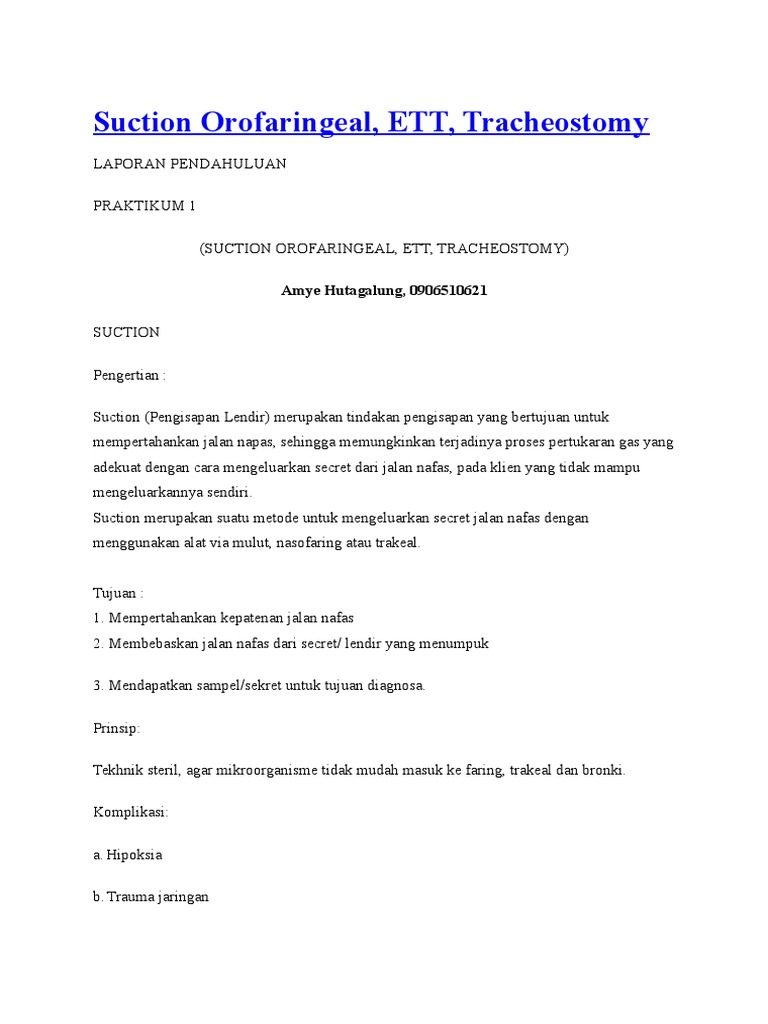 Suction Orofaringeal, ETT, Tracheostomy