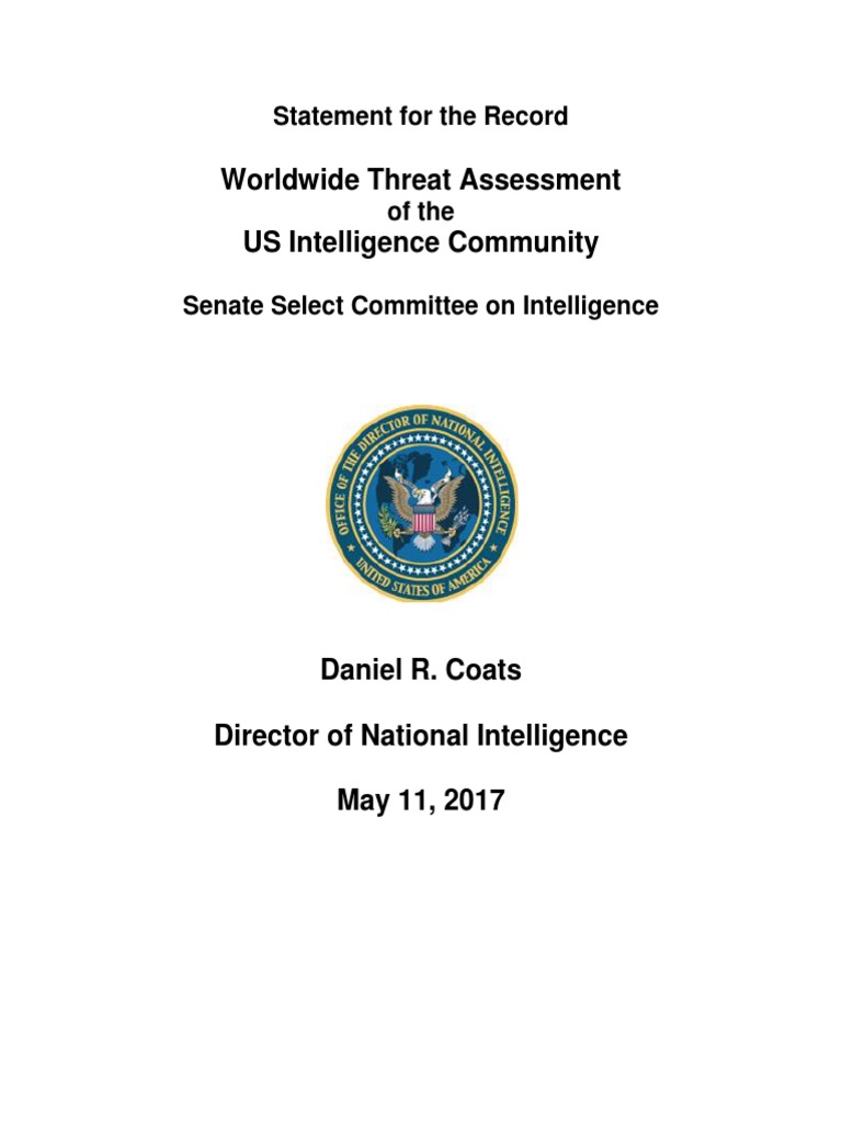 Chairman Burr, Vice Chairman Warner, Members of the Committee, thank you for the invitation to offer the United States Intelligence Community’s 2017 assessment of threats to US national security. My statement reflects the collective insights of the Intelligence Community’s extraordinary men and women, whom I am privileged and honored to lead. We in the Intelligence Community are committed every day to provide the nuanced, multidisciplinary intelligence that policymakers, warfighters, and domestic law enforcement personnel need to protect American lives and America’s interests anywhere in the world.
