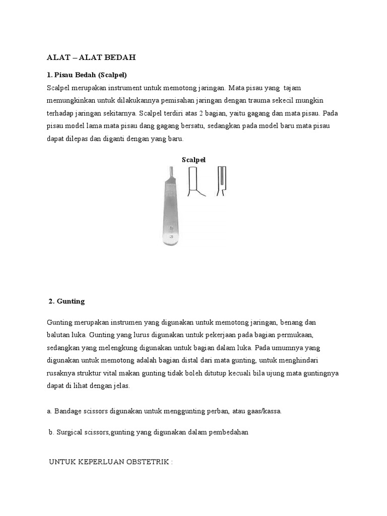 Scalpel merupakan instrument untuk memotong jaringan. Mata pisau yang tajam