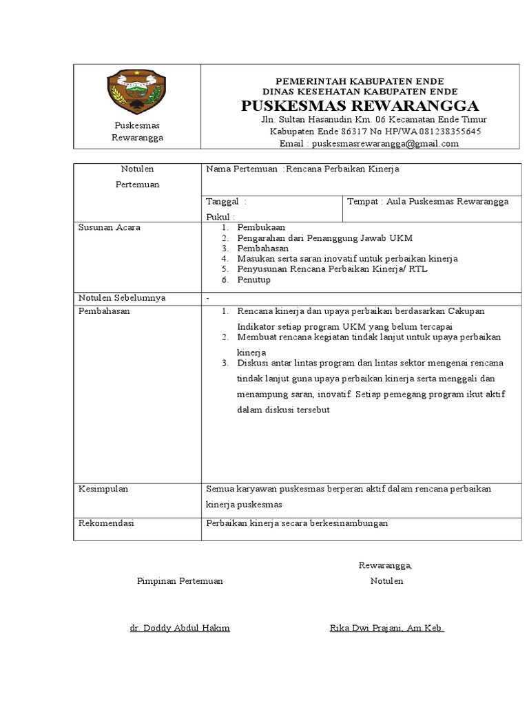 Notulen Nama Pertemuan :Rencana Perbaikan Kinerja