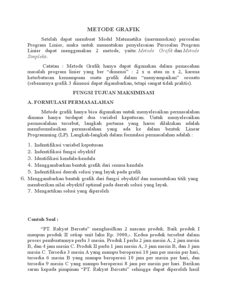 Catatan : Metode Grafik hanya dapat digunakan dalam pemecahan
