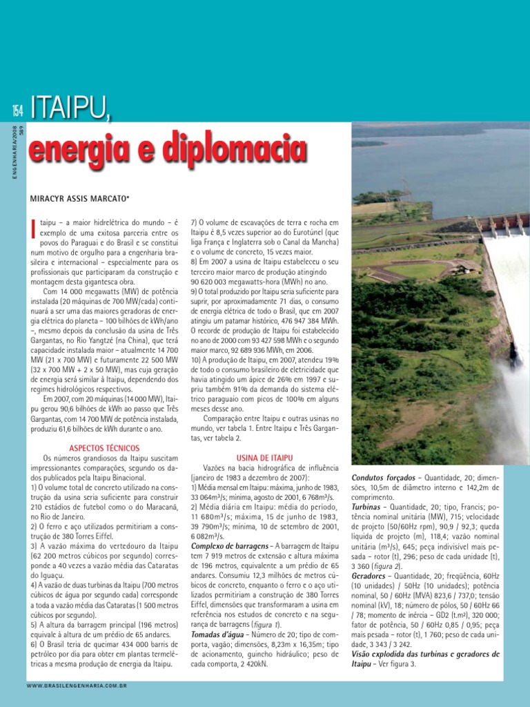 O Instituto de Engenharia, atravs de uma No tocante a Itaipu, o Brasil alm de prover a