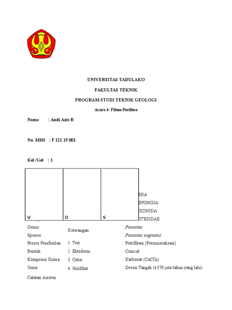 Acara 4: Filum Porifera Kel /Gel :