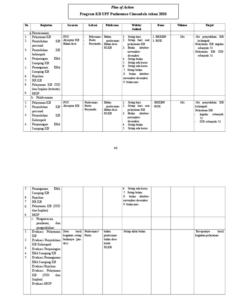 1. Pelayanan KB - PUS - Pukesmas - Bidan 1. Setiap hari 1. BKKBN 18x - 18x penyuluhan KB