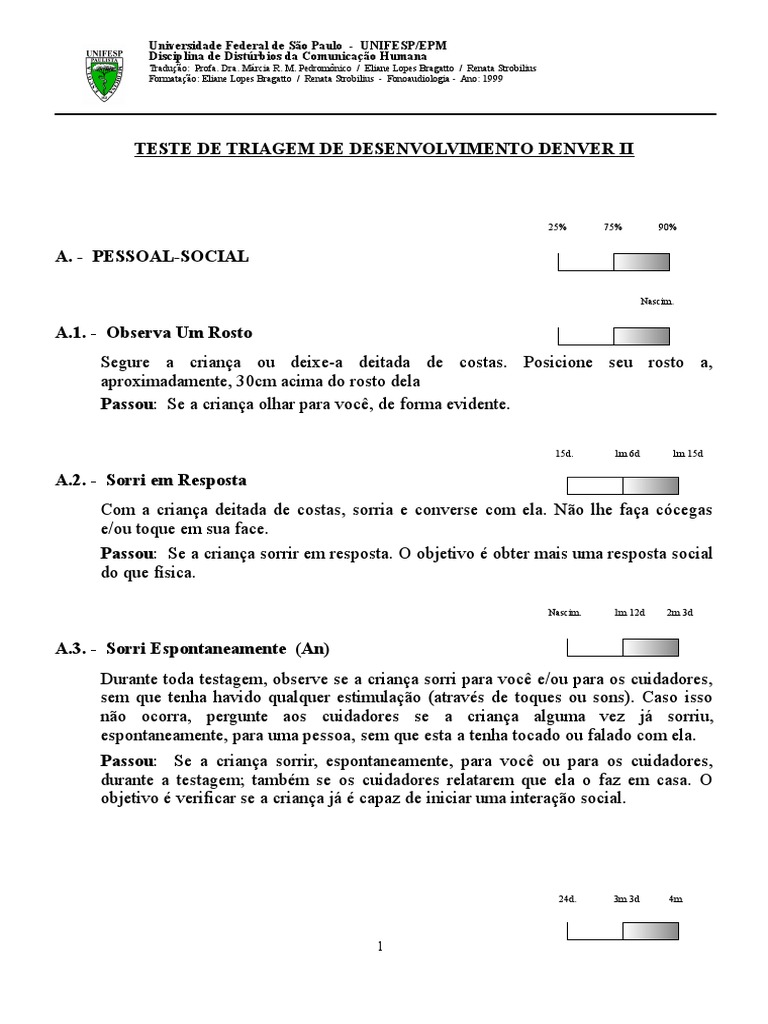 Passou: Se a criana fornecer o primeiro nome de pelo menos um amigo. Nomes de