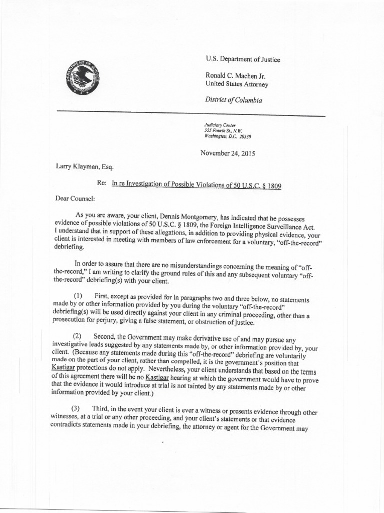 Re: In re Investigation of Possible Violations of 50 U.S.C. § 1809