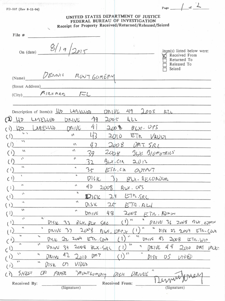 Receipt for Property Received/Returned/Released/Seized