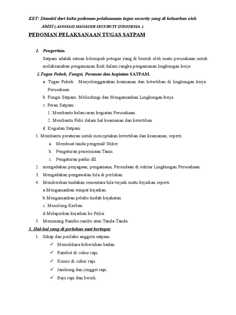 KET: Diambil dari buku pedoman pelaksanaan tugas security yang di keluarkan oleh