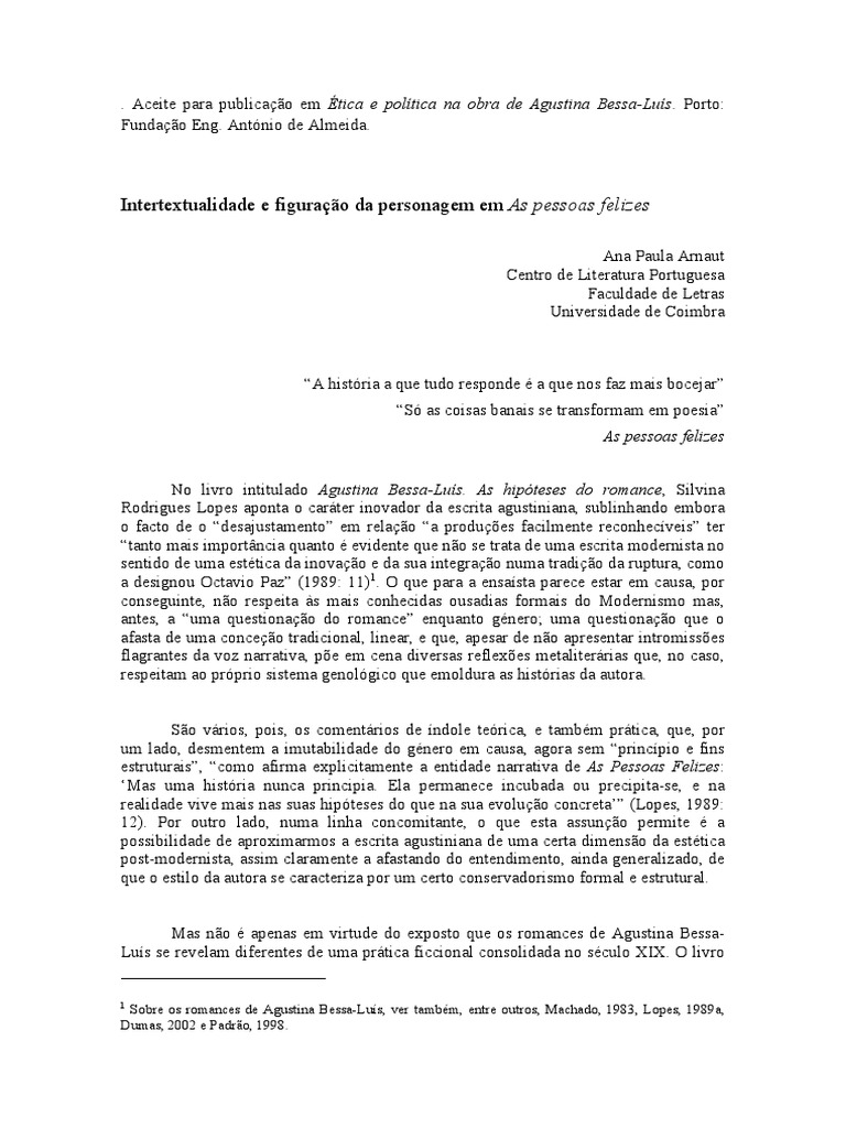 Intertextualidade e figurao da personagem em As pessoas felizes