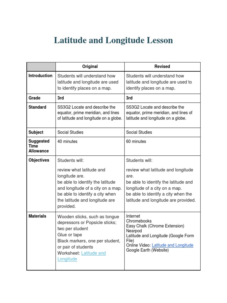Latitude and Longitude Lesson
