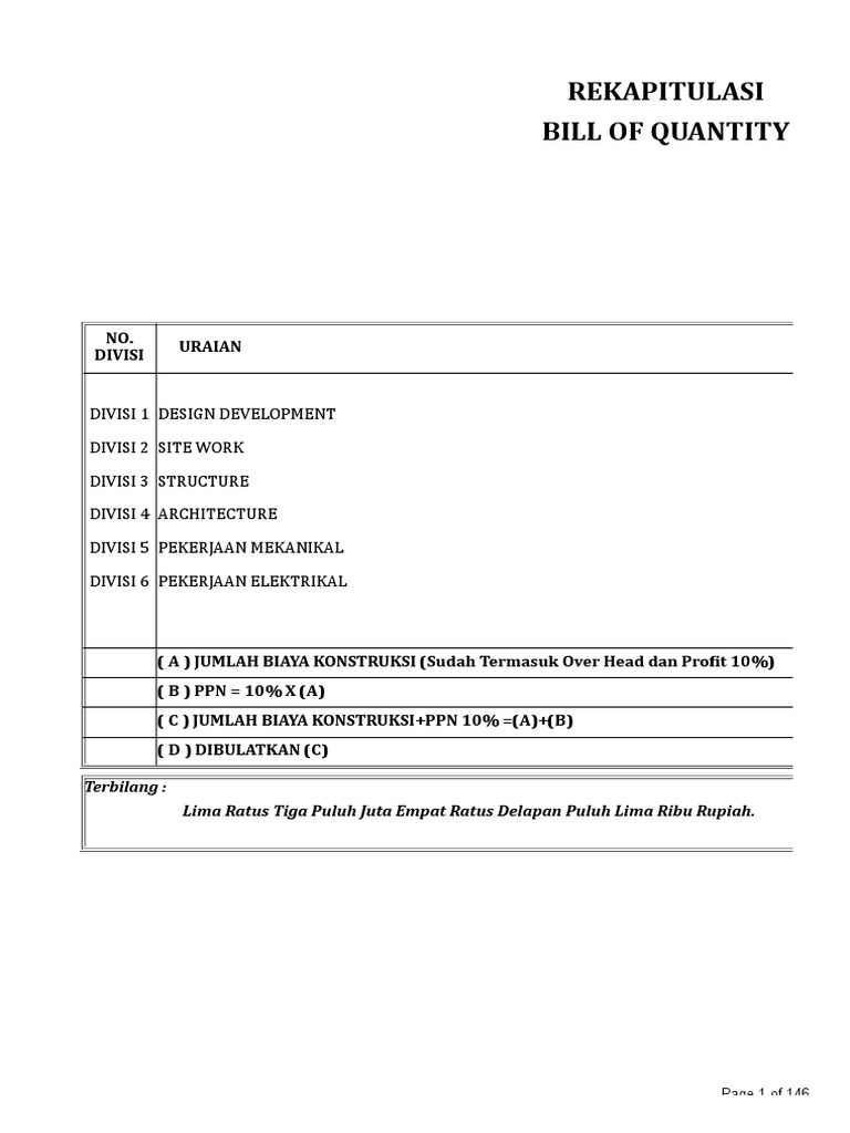 ( A ) JUMLAH BIAYA KONSTRUKSI (Sudah Termasuk Over Head dan Profit 10%)