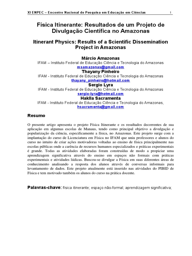 Amazonas.Paraesteevento,cumprimostodososmomentosdoprojetoFsicaItinerantemas