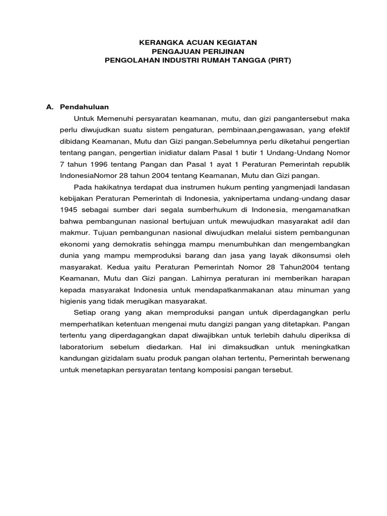 PENGOLAHAN INDUSTRI RUMAH TANGGA (PIRT)