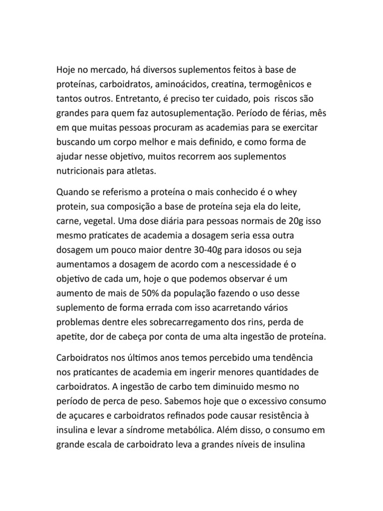 quantidade de suplemeto que irei fazer o mesmo cada corpo e um