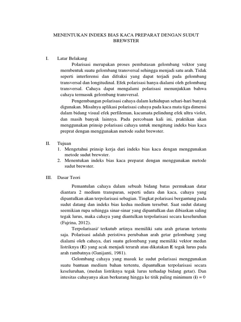 MENENTUKAN INDEKS BIAS KACA DENGAN SUDUT BREWSTER