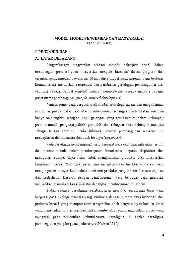 Model-model pengembangan masyarakat terdiri dari model pengembangan