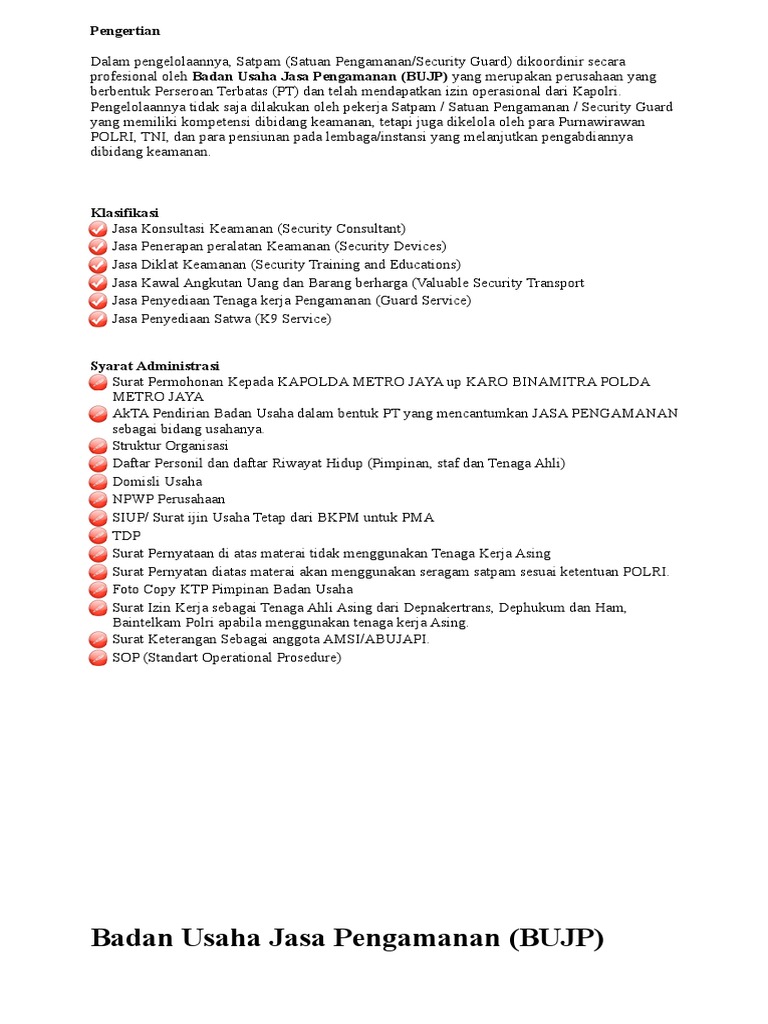 Operasional bagi Badan Usaha di bidang Jasa Pengamanan.