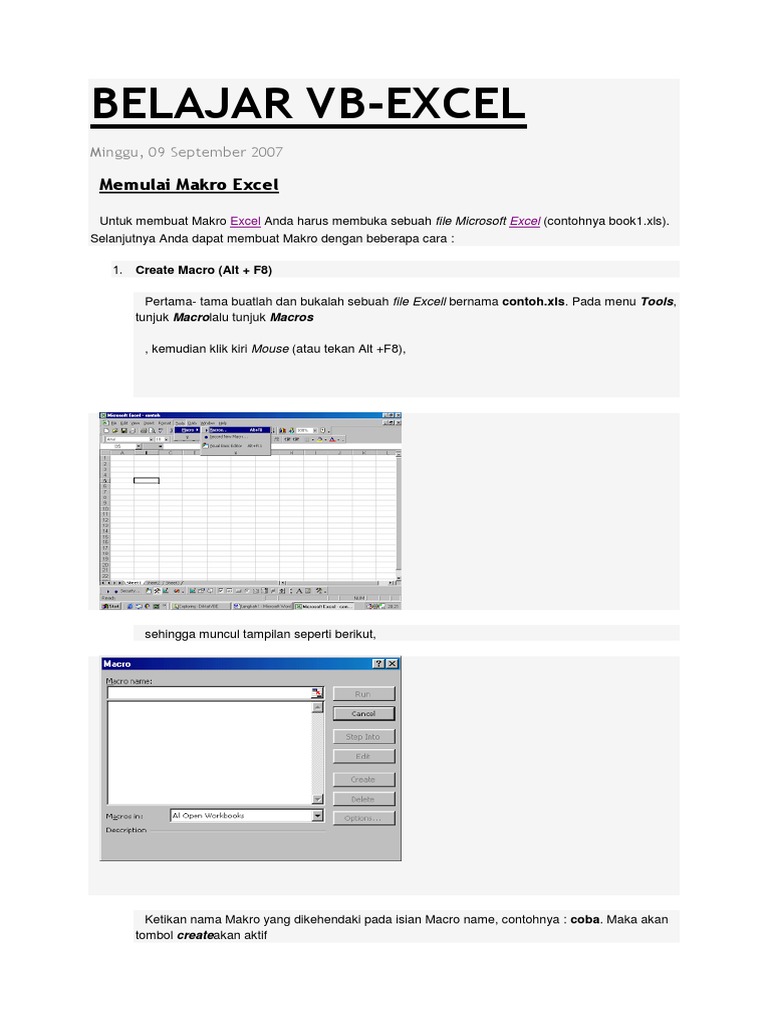 file contoh.xls, file Excell dimana Anda membuat Makro-nya. Dengan cara memilih pilihan