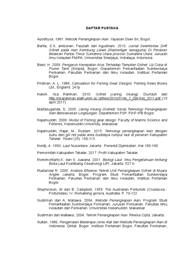 Sudirman dan Mallawa. 2004. Teknik Penangkapan Ikan. Rineka Cipta, Jakarta.