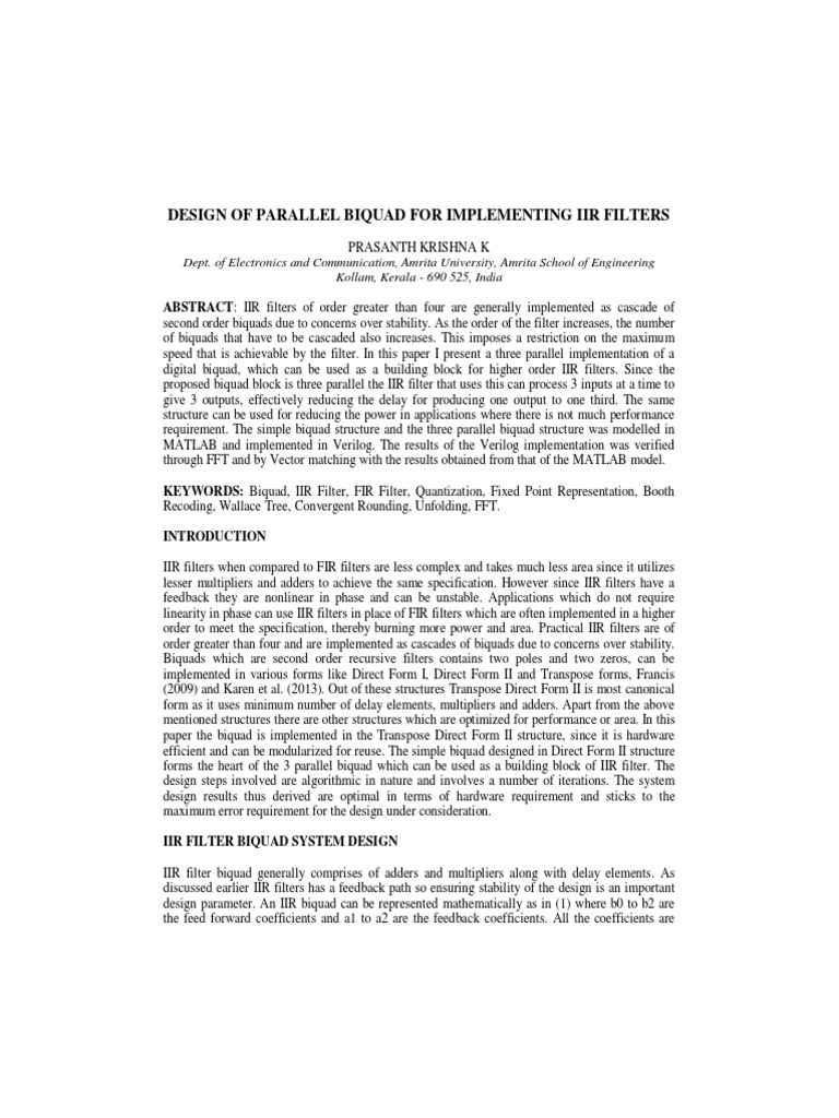 DESIGN OF PARALLEL BIQUAD FOR IMPLEMENTING IIR FILTERS