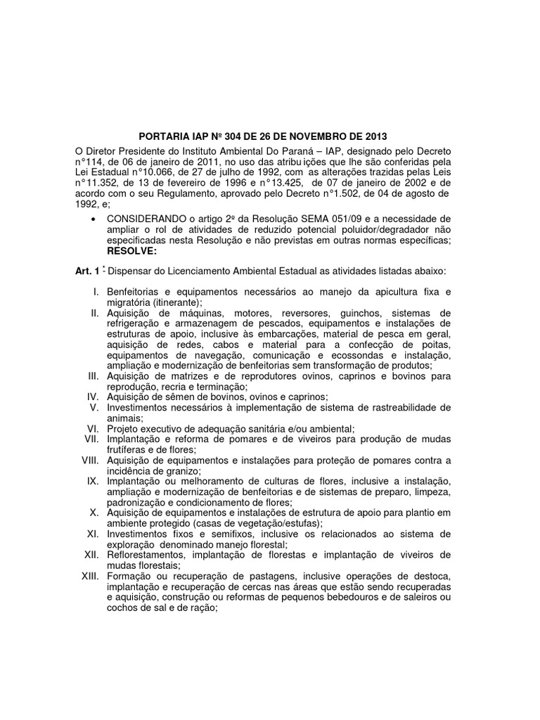 PORTARIA IAP Nº 304 DE 26 DE NOVEMBRO DE 2013