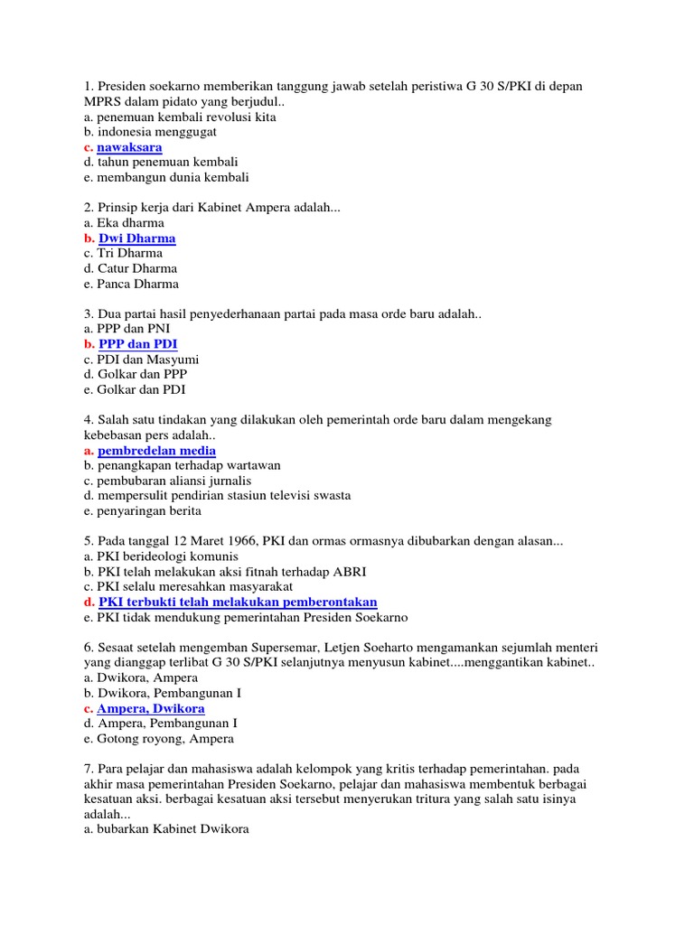 3. Dua partai hasil penyederhanaan partai pada masa orde baru adalah..