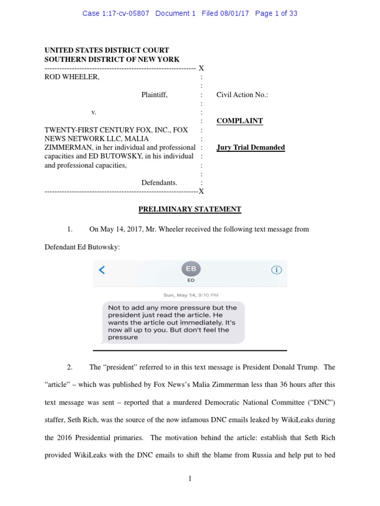 text message was sent – reported that a murdered Democratic National Committee (“DNC”)
