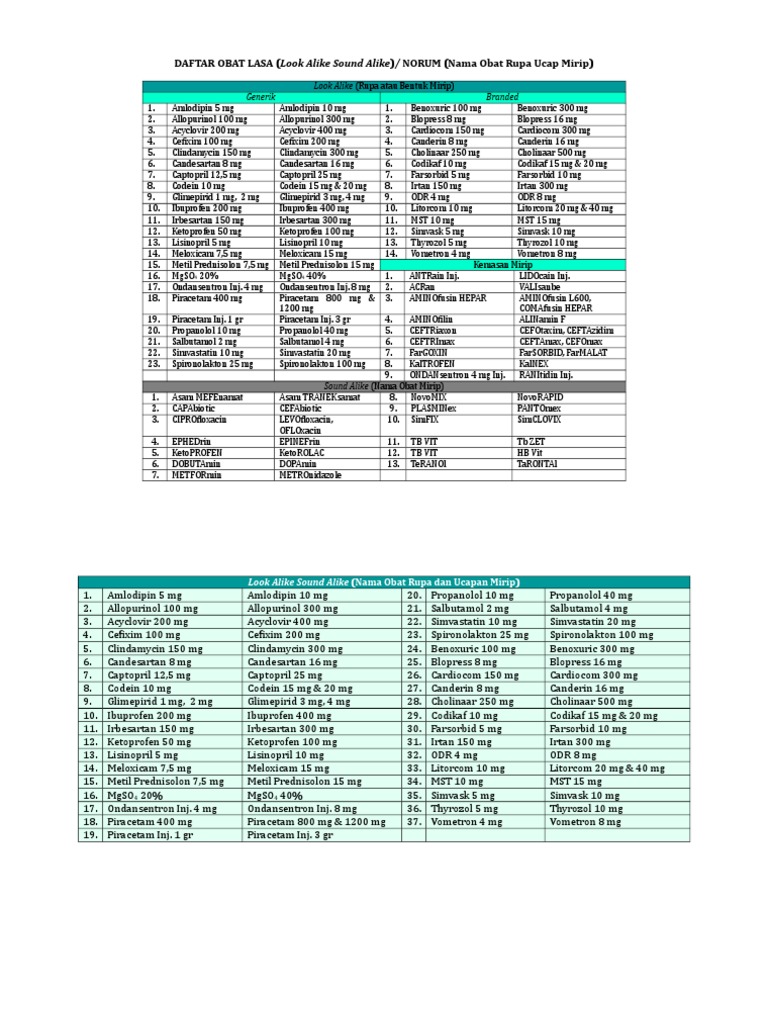DAFTAR OBAT LASA (Look Alike Sound Alike)/ NORUM (Nama Obat Rupa Ucap Mirip)
