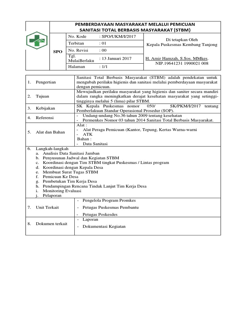 Terbitan : 01 Kepala Puskesmas Kembang Tanjong