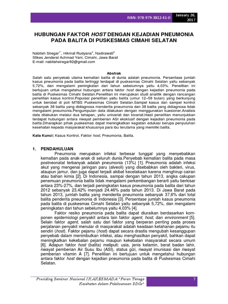 antara faktor host dengan kejadian pneumonia pada balita di Puskesmas Cimahi