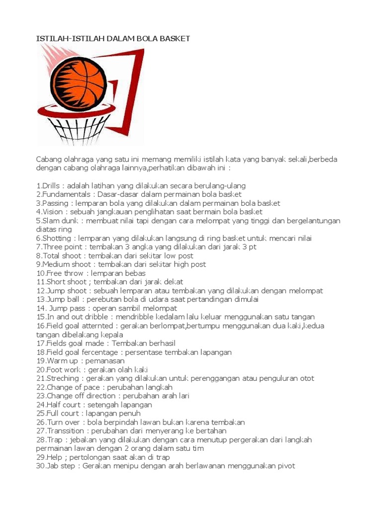 ISTILAH-ISTILAH DALAM BOLA BASKET