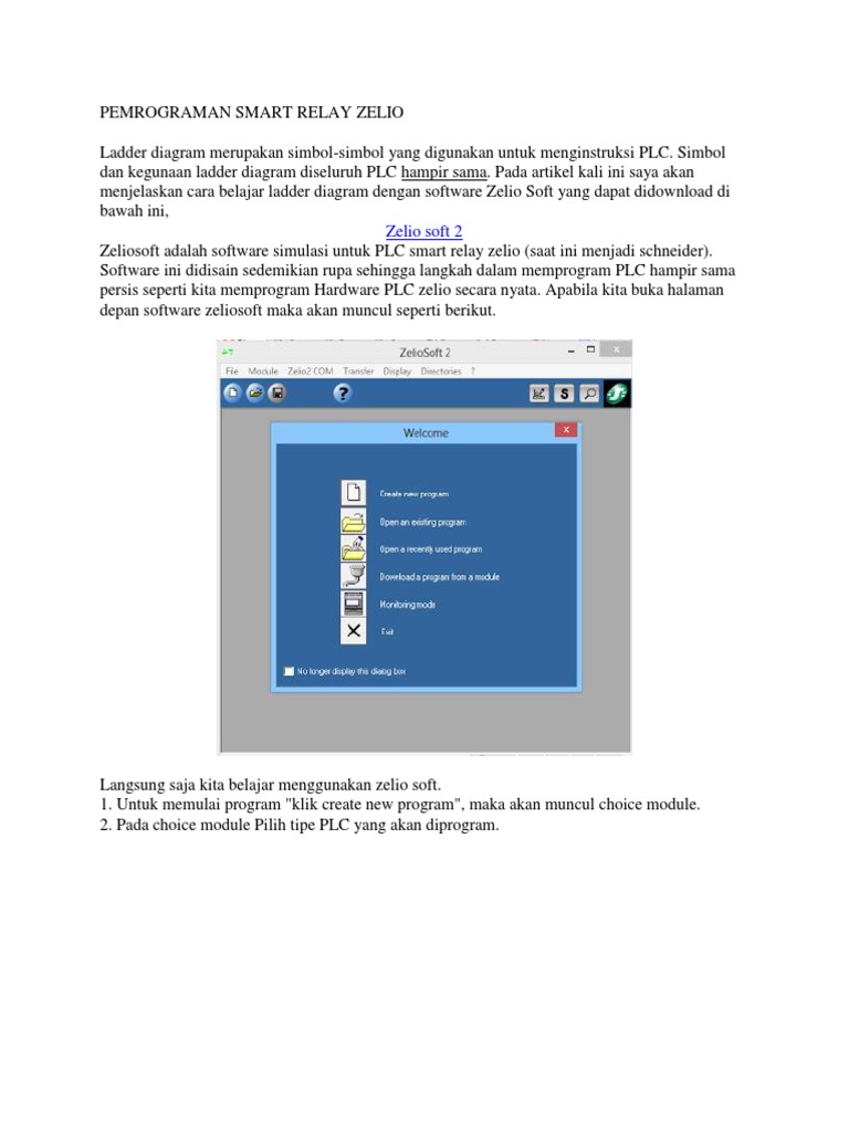 menjelaskan cara belajar ladder diagram dengan software Zelio Soft yang dapat didownload di