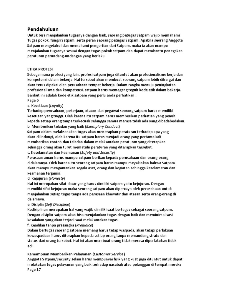 profesionalisme dan kompetensi, satpam harus memegang teguh kode etik dalam bekerja.