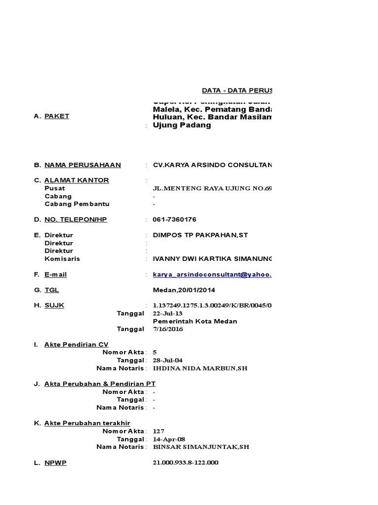 Data Perusahaan CV Karya Arsindo Medan