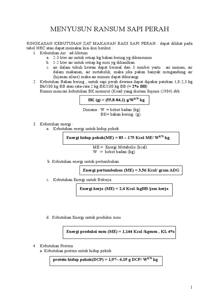 Contoh formulasi ransum sapi perah