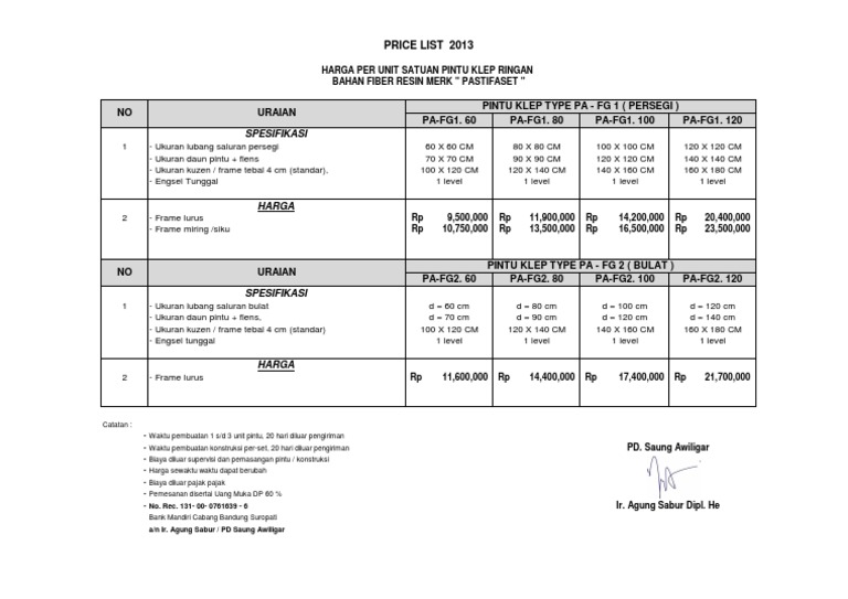 HARGA PER UNIT SATUAN PINTU KLEP RINGAN