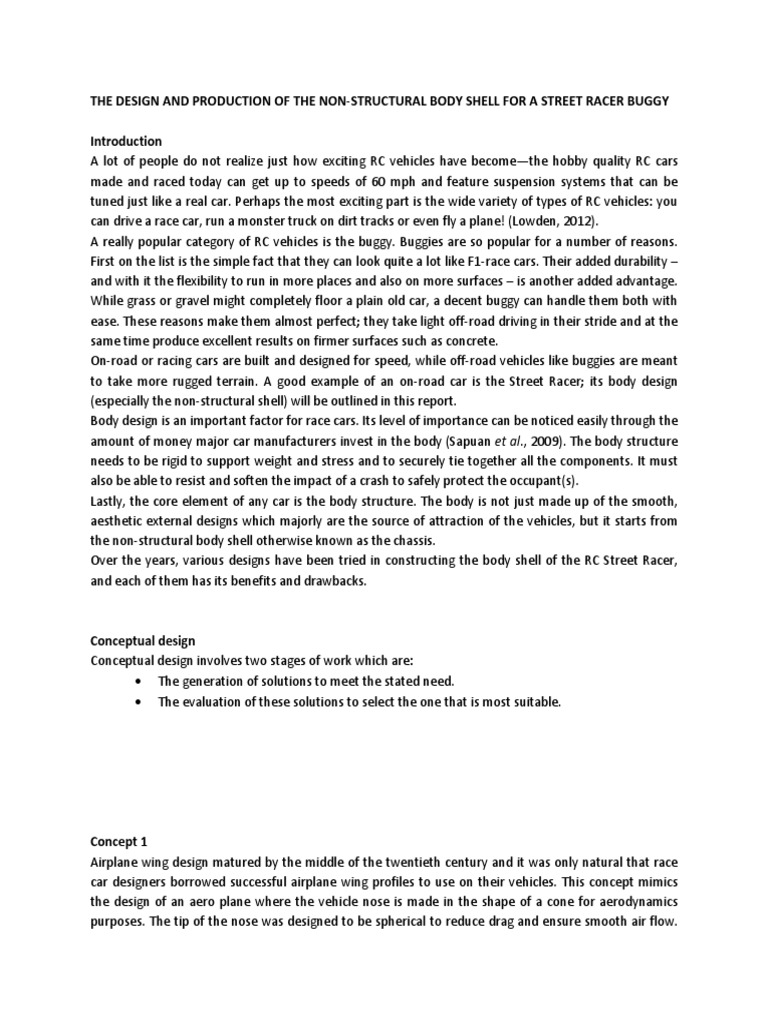 Over the years, various designs have been tried in constructing the body shell of the RC Street Racer,