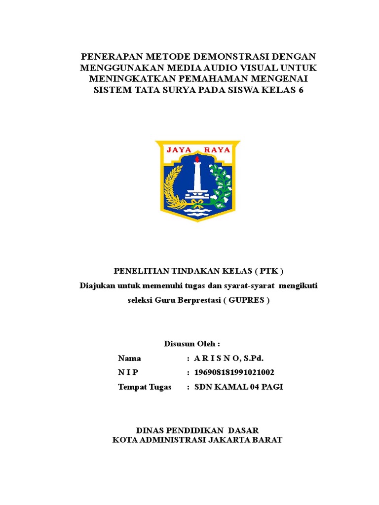 Tindakan Kelas ( PTK ) yang berjudul penerapan metode demonstrasi dengan