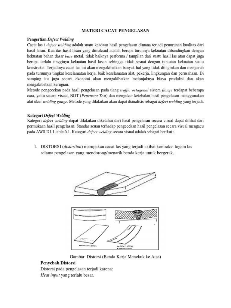 1. DISTORSI (distortion) merupakan cacat las yang terjadi akibat kontraksi logam las