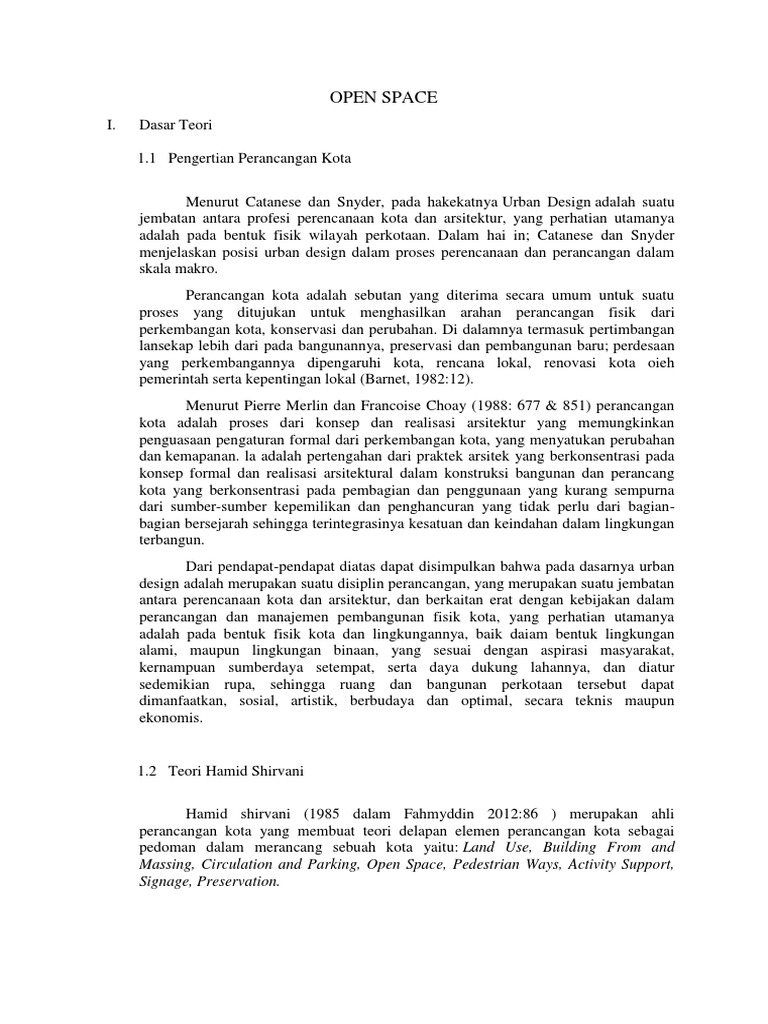 Menurut Shirvani (1985) ruang terbuka ditegaskan dalam arti semua