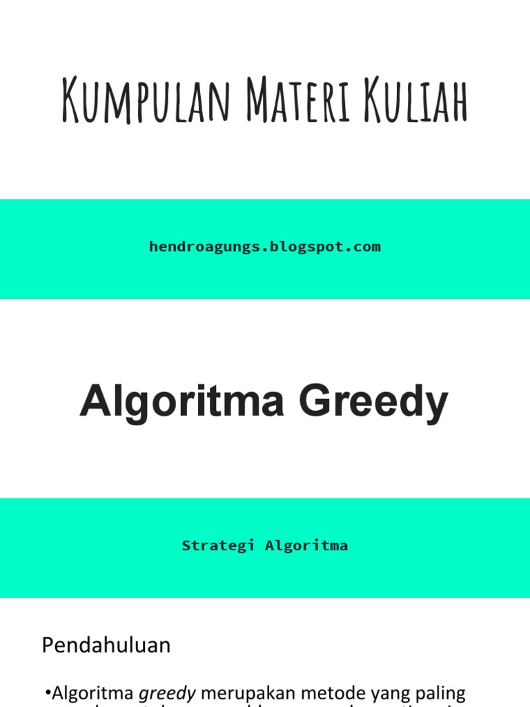 Algoritma greedy adalah algoritma yang memecahkan masalah